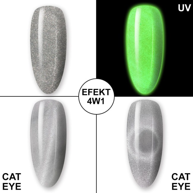 Night Glowing  è una collezione di 9 tonalità di smalti ibridi magnetici, grazie ai quali trasformerai l’aspetto delle tue mani in una piccola opera di luce dall’effetto metallico. La gamma di sfumature di questa serie sono sfumature pastello delicate, primaverili e assolutamente fenomenali con polvere magnetica… che inoltre si illuminano al buio! Questo è un effetto spettacolare che nessuno passerà indifferente!