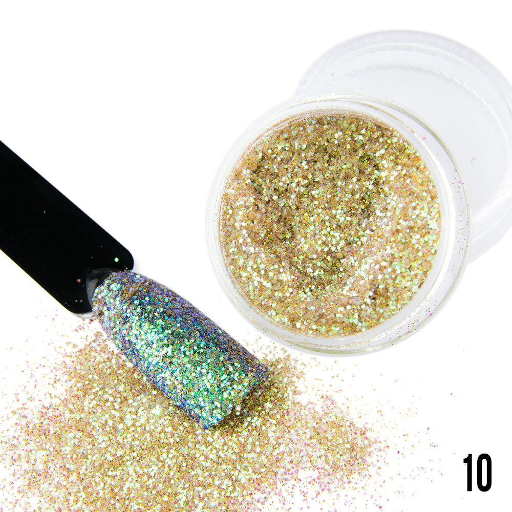 Polvere effetto zucchero tridimensionale! L’alternanza di glitter sottili e un po’ più spessi regalerà particolarità alla tua nail art. Cosa aspetti? Avrai un prodotto unico nel suo genere!