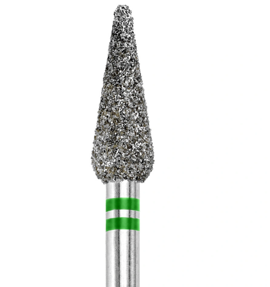 Tacca verde: Adatto per lavori di pedicure, per trattare fusti laterali e angoli di chiodo, calli, calli e crepe; La forma ricorda un bocciolo o una goccia allungata, che ti permette di lavorare con attenzione in luoghi difficili da raggiungere.