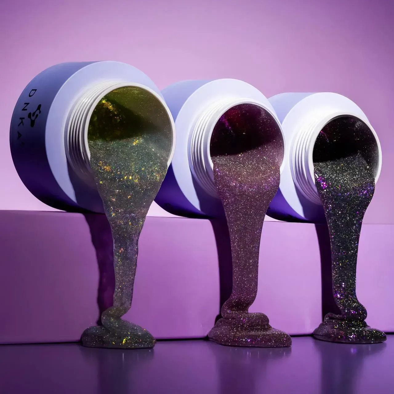 • Pigmentazione: glitter nel gel sono distribuiti uniformemente e autolivellanti. I gel possono essere miscelati per creare una tonalità unica ;