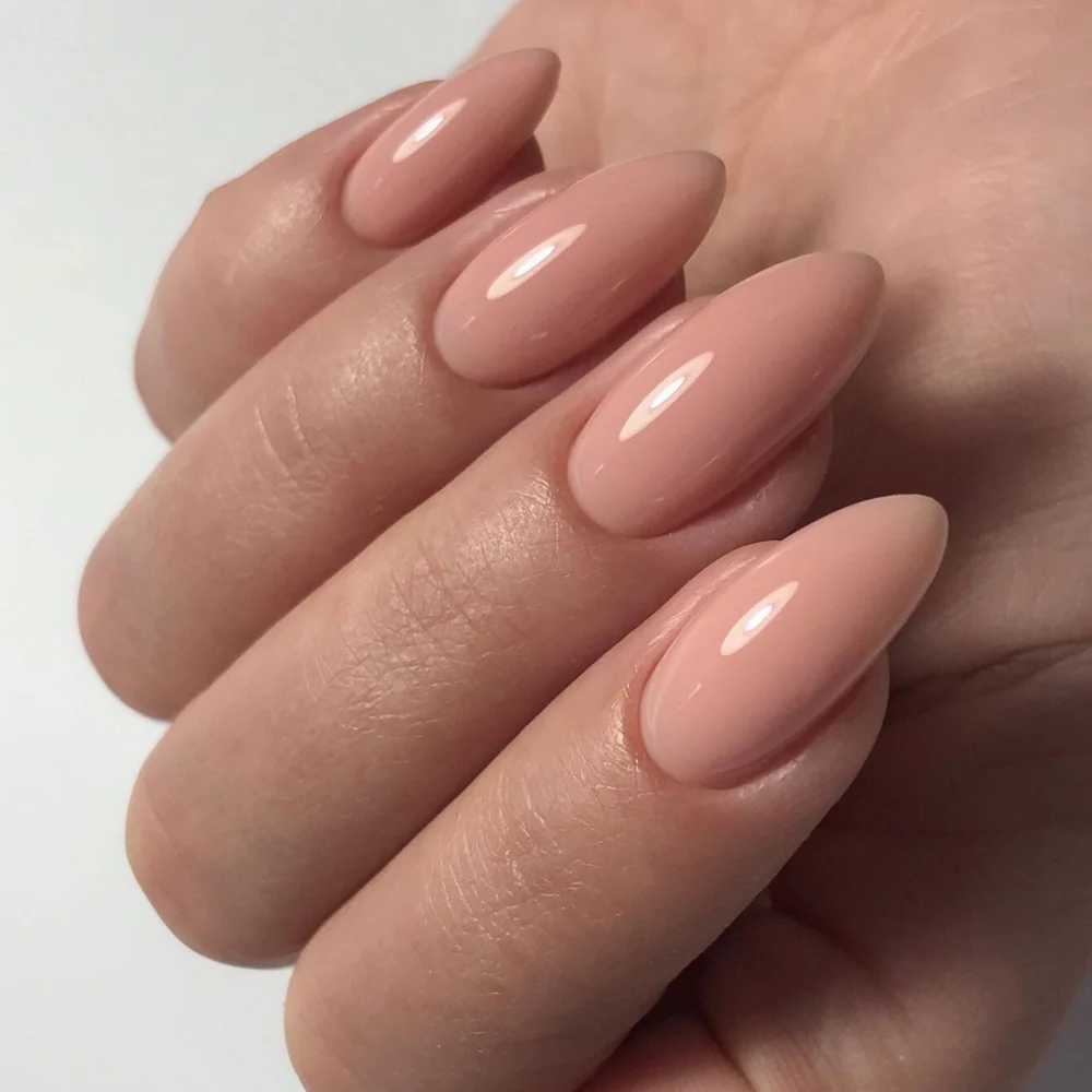Per un effetto rinforzante e una coprenza perfetta, utilizza la tecnica “a goccia” nel secondo strato per creare un leggero rinforzo sull’apice dell’unghia.
