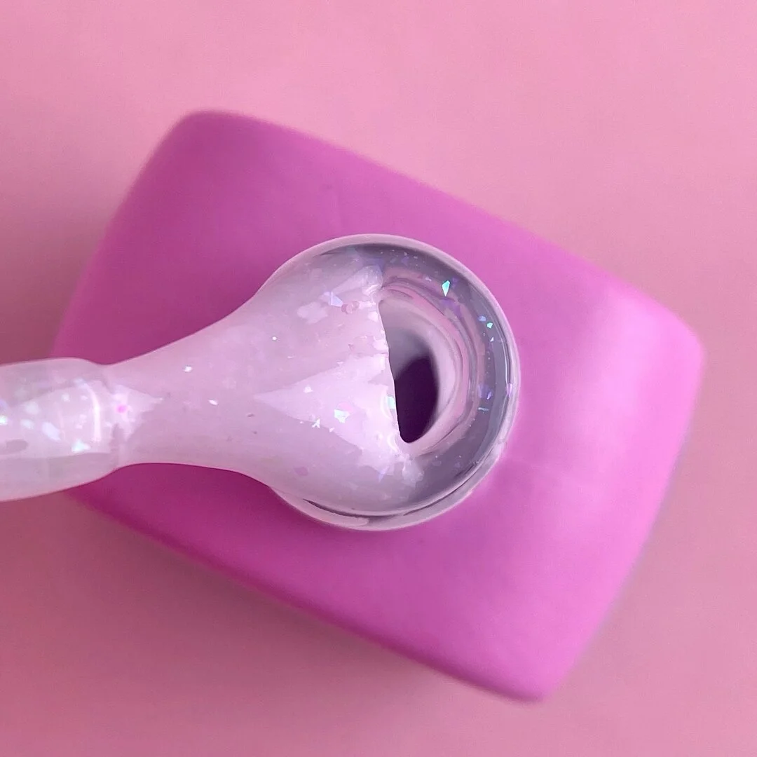 CRYSTAL BASE è una base con glitter e paillettes Queste basi hanno una consistenza media, sono ben autolivellanti.