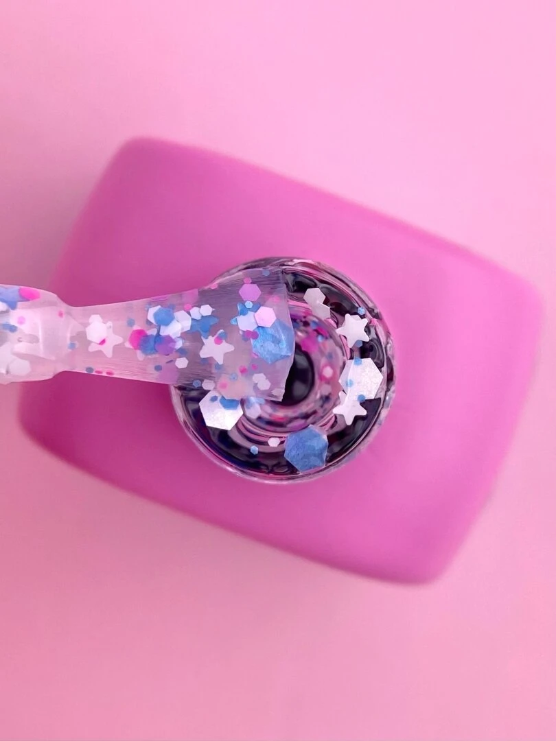 Top Luna è un top coat senza dispersione con elementi decorativi, progettato per armonizzarsi magnificamente con qualsiasi colore di unghie.