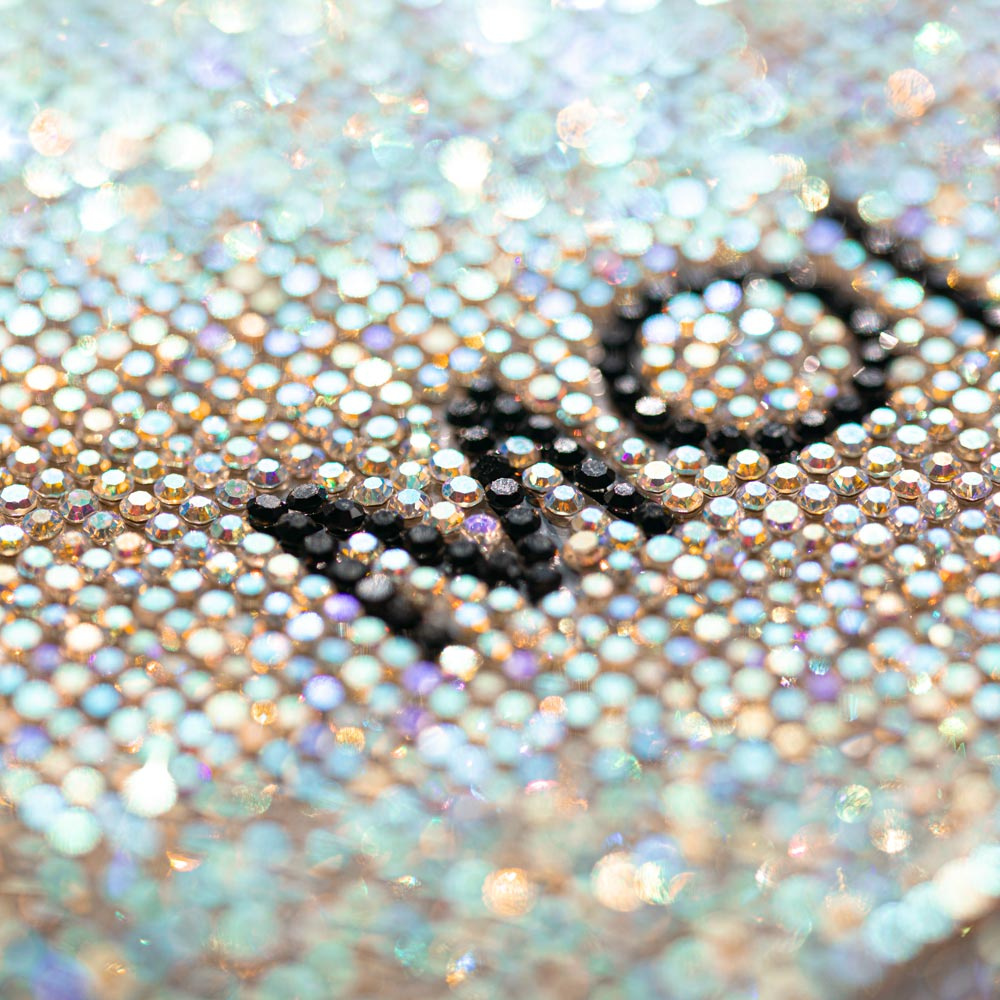 L’intera cassa è ricoperta di luccicanti swarovski.