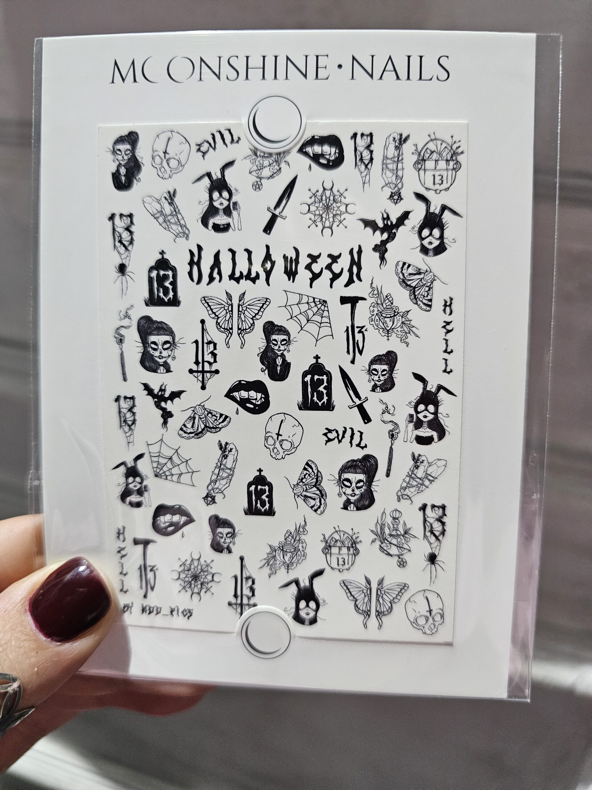 Moonshine è un azienda che si occupa di creare i migliori slider o comunemente Water Decals, con questo marchio sarete sempre alla moda con le ultime tendenze! Modo d’uso – Ritagliare il disegno desiderato per la vostra nail art. – Immergere il disegno scelto in un bicchiere d’acqua tiepida per 5/10 secondi – Eliminare l’acqua in eccesso e con l’aiuto di una pinza dividere il disegno dal foglio – Applicare sull’unghia, preferibilmente su un prodotto con strato di dispersione Misure Sliders 7×10