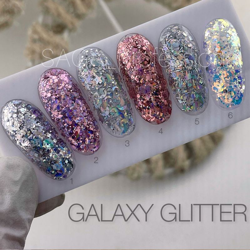 Saga Professional Galaxy Glitter è la nuova collezione, che ti permette di creare unghie e manicure magnifiche e brillanti.