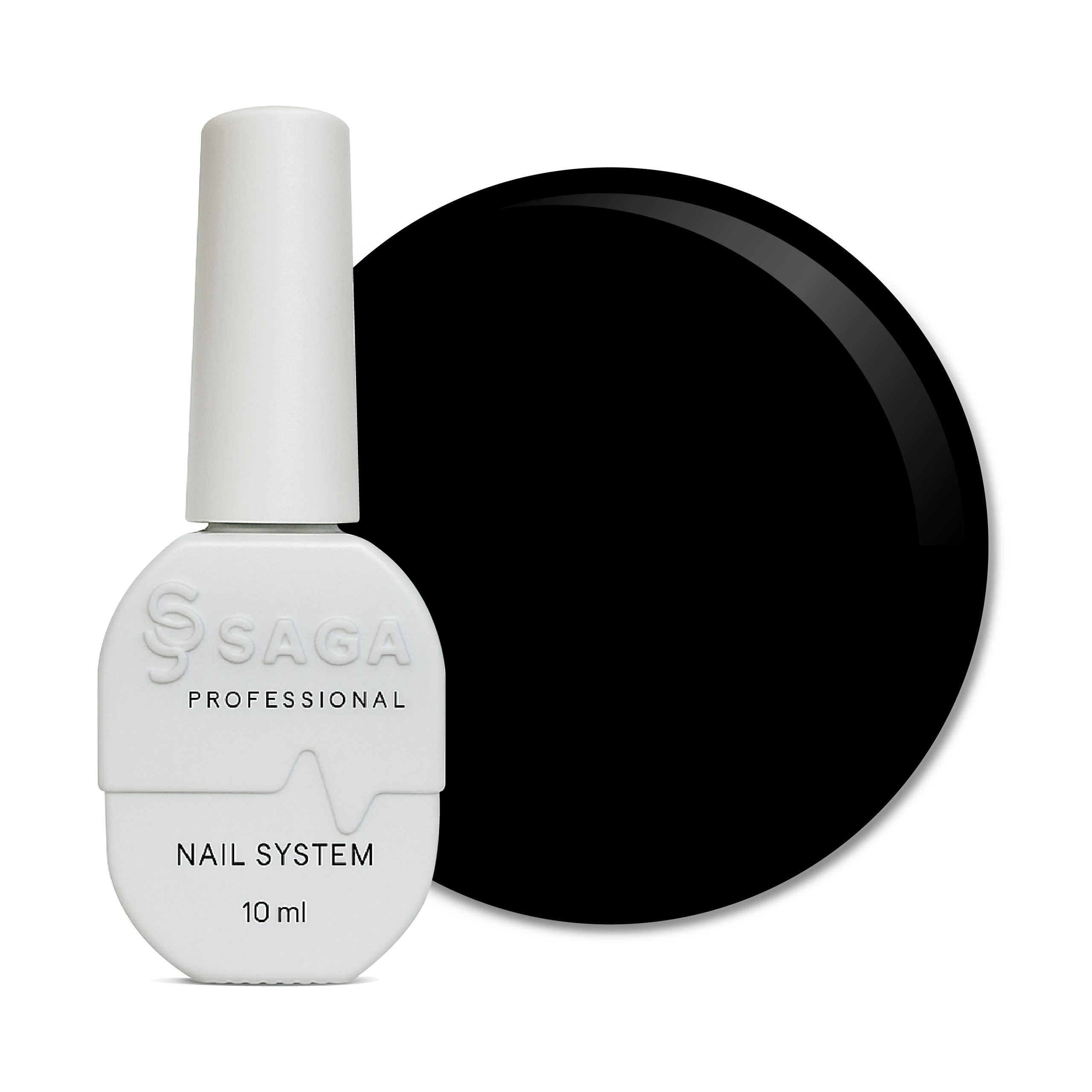 Smalto gel Saga Professional Super Black – creato per uso professionale. Ha un colore molto denso e si applica idealmente in uno strato sottile senza livellare.