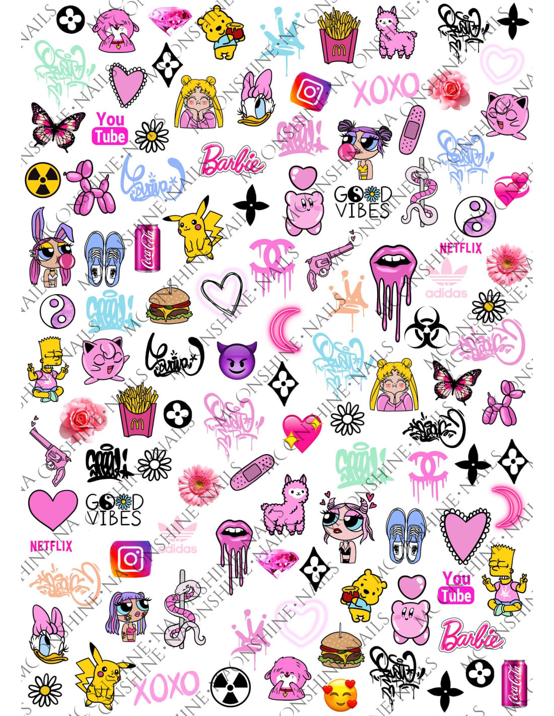 Moonshine è un azienda che si occupa di creare i migliori slider o comunemente Water Decals, con questo marchio sarete sempre alla moda con le ultime tendenze! Modo d’uso – Ritagliare il disegno desiderato per la vostra nail art. – Immergere il disegno scelto in un bicchiere d’acqua tiepida per 5/10 secondi – Eliminare l’acqua in eccesso e con l’aiuto di una pinza dividere il disegno dal foglio – Applicare sull’unghia, preferibilmente su un prodotto con strato di dispersione Misure Sliders 10×14