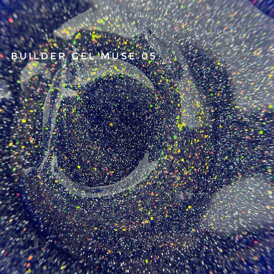 MUSE BUILDER GEL – Gel builder con glitter riflettenti e scaglie Yuki, aggiunto per esaltare la lucentezza. Le particelle riflettenti nel gel creano un effetto riflessivo della luce. Alla luce del giorno, forniscono una lucentezza d’accento e, sotto illuminazione artificiale, un effetto radiante profondo.