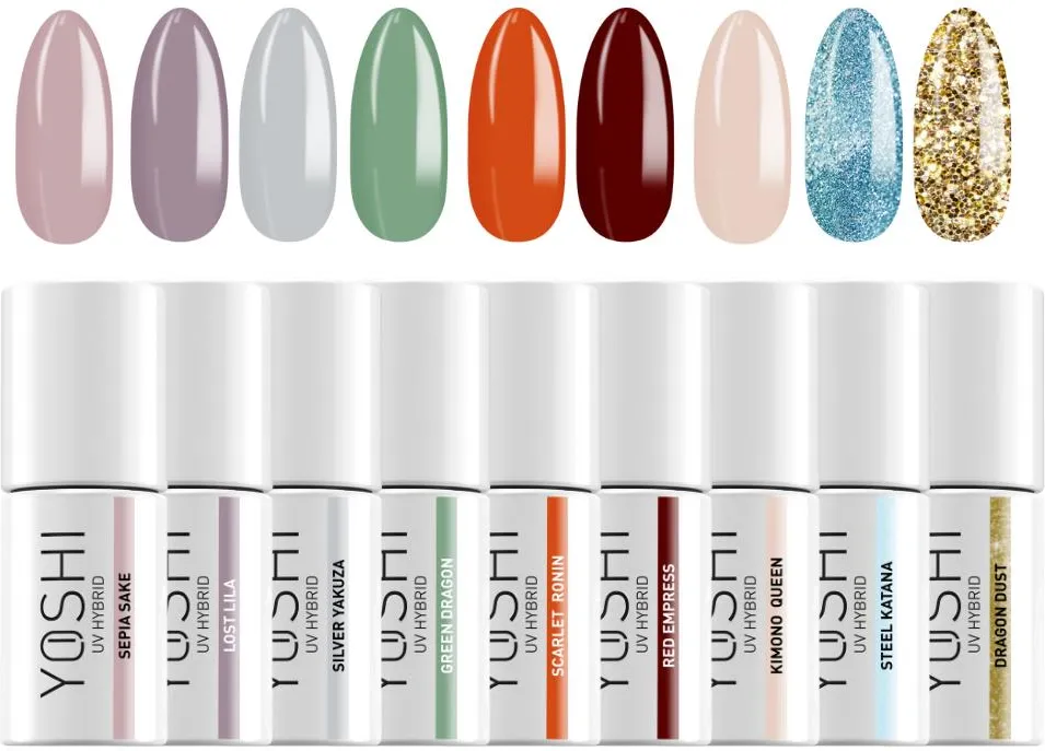 La collezione Yakuza Yuzu di YOSHI è un vero e proprio omaggio alla cultura giapponese. Questa serie trae ispirazione dalle tradizioni, dai miti e dall’estetica giapponese, che combinano forza, armonia e delicatezza. Ogni colore non è solo una sfumatura, ma anche un simbolo della storia, dello spirito dei samurai e della straordinaria natura del Paese del Sol Levante. Perfetto per le donne che apprezzano l’unicità, la delicatezza e uno stile distintivo. UV Hybrid Kimono Queen Hybrid Nail Polish 6 ml – 107
